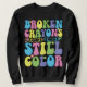 This mental health sweater has the saying Broken Crayons Still Color on it in colourful letters.