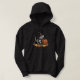 Un dragón barbudo con un gorra de brujas se para orgullosamente junto a una calabaza tallada en Halloween, rodeada de coloridas hojas caídas.