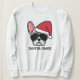 Únete a la fiesta de la diversión con esta linda sudadera de Navidades. El diseño presenta un bulldog francés de color azul merle con un sombrero rojo de Santa y gafas de sol aviador con la frase "Santa Paws" impresa debajo.