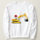 Un lindo ilustracion de una excavadora de juguetes amarillos con sombrero de Santa y decorada con Navidades ilumina algunos regalos de Navidades. Perfecto para los amantes de los camiones de construcción de todas las edades. Un suéter ideal para Navidades para los entusiastas de camiones excavadores grandes o pequeños, chicas o niños.