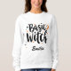 El diseño moderno de la camiseta personalizado de Halloween muestra el texto "Bruja básica" en una tipografía de estilo caligrafía negra. Hace el mejor regalo personalizado de Halloween para ella - tu amiga, novia, hermana o incluso tu vecina! Perfecto para que se sientan especiales, aumentar su confianza y conseguir un regalo único y agradable.