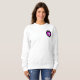 El logo oficial de FWAS impreso en un suéter blanco de una mujer. ¡Una gran manera de mostrar su apoyo a la Sociedad Astronómica Fort Worth!