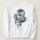 Esta imagen es un ilustracion estilizado en blanco y negro de una serpiente enrollada alrededor de un cráneo. El diseño audaz tiene líneas agudas y alto contraste, dándole una apariencia llamativa y dramática.