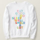 El concepto de este diseño es la forma sencilla de ser feliz todos los días. Los textos coloridos alegrarán tu día. Las buenas vibraciones irradiarán a la gente a tu alrededor. Este diseño es también un regalo maravilloso para sus amigos y familia durante ocasiones especiales como cumpleaños, año nuevo, Navidades o "simplemente te echo de menos". Compartir vibraciones positivas con la gente a su alrededor con este diseño.