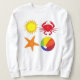 El diseño de Sweatshirt incluye un ilustracion original de marca de un sol de verano, cangrejo, pez estrella y bola de playa. ¿No ves lo que estás buscando? ¿Necesita ayuda con la personalización? Haga clic en "Contactar con este diseñador" para tener algo creado sólo para usted.