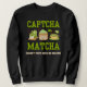 Divertido CAPTCHA DA MATCHA Sudadera de latte de borrachera con TEXTO de PERSONALIZABLE, para bebedores de té de café con leche matcha. El diseño muestra tres imágenes de café mate y hojas en medio de texto verde negrita leyendo CAPTCHA DA MATCHA. El texto de abajo dice PROBAR QUE ERES HUMANO (¿no te encantan esos captchas?) y es PERSONALIZABLE para que puedas PERSONALIZAR con tu propia redacción o borrar.