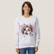 Esta hoodie deportiva de chica de fútbol presenta una "explosión" de balones de fútbol de tamaño variado y formas de estrella de marrón y blanco - un pequeño patrón de puntos de polka blanco sobrepasa a una de las estrellas de marrón - personalizar con el nombre del atleta, número de monograma y camiseta - el diseño está en la parte delantera del suéter pero se puede mover o duplicar en la parte posterior - por katz_d_zynes
