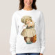 Chica de Halloween con camiseta de Apple. El tallado de manzanas era un juego jugado en los viejos días para ver si el tallado deletreaba el nombre de tu futuro cónyuge.