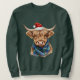 Say "Merry Christmas" in the coziest way with this adorable Highland Cow portrait! This beautiful watercolor graphic captures the charm of a shaggy Scottish Coo wearing a classic Santa hat and a festive blue and green tartan scarf.