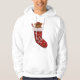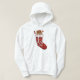 Cute Christmas hoodie with a Teddy Bear in a snowflake decorated stocking. Merry Christmas printed on back can be personalized.