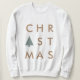Simple, stylish "Christmas" quote sweatshirt with a minimalist sage green christmas tree design and gold text in modern typography. The text can be customised with your own letters for the perfect holiday gift! The jumper is featured in a trendy ash gray color. | #christmas #holidays #apparel #fashion #mens #giftsforhim
