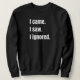 Audaz diseño de citas sarcásticas diciendo que vine. Vi. Ignoré. en fuerte texto blanco sobre fondo negro, perfecto para introvertidos o amantes del humor.