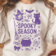 Este suéter caprichoso es perfecto para celebrar la temporada espeluznante. El diseño de estilo doodle presenta ilustraciones hechos a mano de arcos de coqueta, caramelos, una bruja, gato, murciélago, caldero y más, todo alrededor de la frase festiva "Temporada de fantasía". Es una gran manera de celebrar Halloween esta temporada.