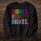 Esta camiseta audaz y vibrante enfatiza el poder de la igualdad con la llamativa frase "Derechos. Derechos. Derechos." en un arcoiris de colores que representan varias identidades. Perfecto para cualquiera que defienda los derechos LGBTQ+, la igualdad y la inclusividad, este diseño es una declaración para eventos de orgullo y más allá. Destaca la diversidad, la unidad y la lucha por la igualdad de derechos para todos. Usa esta sudadera para estar orgulloso y amplificar tu voz por la justicia.