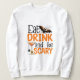 Coma Bebida y asusta sudadera de Halloween. El diseño de la moderna familia que combina el diseño de la camiseta de Halloween incluye el texto "Come Beat And Be Scary Halloween" con letras en blanco y naranja con un pequeño acento fantasma. Orden por cada miembro de su tripulación.
