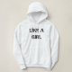 Hoodie con "LIKE A CHICA" escrito en la parte superior.