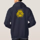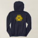 Geólogo - en amarillo con la roca cruzada martilla símbolo. Impresión trasera en las sudaderas con capucha en negro, carbón de leña, marina de guerra o blanco.