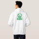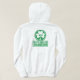 Sudadera con capucha blanca con el logotipo del trébol de kettlebellsireland.com en el kettlebell trasero y verde del kettlebellsireland en el frente.