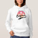 Sudadera con capucha blanca para mujer con un diseño que presenta una puesta de sol retro con palmeras. Este diseño de sudadera también tiene California en una fuente manuscrita con un glifo de cola de floritura para ese look retro con estilo. Esta sudadera es solo para ti si eres de Fresno o para regalar o como recuerdo para alguien.