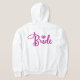 ¡Brilla en tu gran día con esta sudadera con capucha de novia brillante! Perfecta para fiestas de novia, eventos de despedida de soltera o desayunos después de la boda. Características de forro de felpa suave y letras con brillo que duran. Personaliza con nombres o fechas de boda. [Texto alternativo: Sudadera con capucha rosa con la palabra "Novia" y forro de felpa acogedor, ropa personalizable para fiestas de boda y sesiones de fotos]