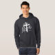 Esta sudadera con capucha para hombre se muestra en gris oscuro con texto blanco: Él ha resucitado