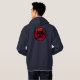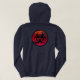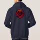 Símbolo circular del biohazard del estilo en la niebla roja negra y tóxica - diseño del backprint en las sudaderas con capucha en negro, carbón de leña, marina de guerra, ceniza o blanco.