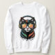 A vibrant vector illustration of a stylish black cat wearing oversized orange-tinted sunglasses and colorful headphones. The cat’s fur features neon streaks of orange, green, and blue, giving it a modern, edgy vibe. The design includes a dripping paint effect at the bottom, adding an artistic and trendy streetwear touch.