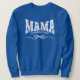Moderno y elegante Blue Toile Coquette MAMA sudadera con TEXTO PERSONALIZABLE. El diseño muestra la palabra MAMA en el popular tipo de letra universitaria que se muestra en forma arcaica y se llena con un patrón en mosaico azul. Debajo hay un PERSONALIZABLE curvo TEXTO que se puede PERSONALIZAR con el nombre de Mamá, y el diseño se termina con una coqueta de arco. Esta sudadera de mamá le haría un gran regalo, especialmente para el Día de la Madre. Otras versiones de MAMA disponibles, así que ¿por qué no comprar el set?