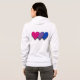 Hoodie de mujer con el diseño de corazones en colores de bisexualidad; bandera del orgullo de rayas rosas, púrpura y azul, diseño de amor arcoiris