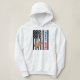 Diseño de un agujero de maíz Guay que muestra una bandera norteamericana angustiada con una tabla de mimbre de madera y la leyenda "Cornhole Legend" en color azul y rojo.