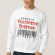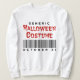 Este diseño de Halloween presenta texto en negrita que dice "Disfraz Genérico de Halloween" con un tipo de letra festivo, goteando sangre, que evoca una vibración espeluznante pero juguetona. Debajo del lema hay un gran código de barras negro. Las palabras "31 de octubre" están alineadas con la anchura del código de barras, vinculando el diseño a la noche de Halloween. Este diseño minimalista es perfecto para los que prefieren disfraces simples y de bajo esfuerzo, ya que humorísticamente imita una etiqueta de producto comprada en una tienda, convirtiendo al usuario en un "disfraz genérico". Es divertido usarlo porque da un giro inteligente e irónico a la indumentaria de Halloween, que no requiere utilería ni esfuerzo adicional mientras sigue provocando risas y encajando el ánimo festivo.