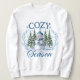 Cozy Season Cute Snowman Winter Christmas Trees Sweatshirts features a cute snowman with Christmas trees surrounded by a coquette floral wreath accented with snowflakes with the text "Cozy Season" in modern calligraphy script typography. Perfect for Christmas gifts, Christmas party apparel and holiday celebrations, winter and holiday birthdays and more. Created by Evco Studio www.zazzle.com/store/evcostudio