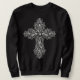La cruz de estilo gótico con calaveras y detalles de desplazamiento se ven muy bien en ropa clara y oscura.