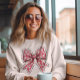 Hermosa y querida sudadera. © Tees & Sweats at Zazzle. Esta sudadera tiene un hermoso arco rosado, cubierto de corazones blancos. A su alrededor están las frases "eres hermosa, eres digna, eres amada". Un encantador suéter de salud mental para recordarte lo que deberías saber dentro. En la parte de atrás dice "Para la persona detrás de mí, eres digno, eres hermoso, eres amado, de la persona delante de ti.xxx"