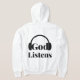 Esta figura masculina incluye las palabras "Dios escucha" en una letra negrita con letras negras mostrando un conjunto de auriculares sobre la frase que Dios escucha en este estilo y tema basado en la fe. Esta capucha es increíblemente suave y relajada, hilada a partir de una lujosa mezcla de polialgodón, ideal para el uso diario, tiene una gran imagen a juego en la parte posterior.