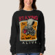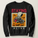 Este diseño espeluznante y humorístico presenta un esqueleto que disfruta de una taza de café humeante, rodeado de calabazas talladas y murciélagos voladores, todo ello contra un naranja texturado y un fondo beige. El texto "STAYING" está goteando inquietantemente en la parte superior, mientras que "ALIVE" se coloca sutilmente en la parte inferior, creando un contraste divertido. Este diseño es perfecto para los aficionados a Halloween, los amantes del café o cualquier persona con un sentido del humor negro que busque un diseño único y juguetón de temporada espeluznante.