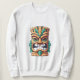 El amenazante pero impresionante rostro tiki, adornado con intrincadas tallaciones y exuberantes hojas verdes, es un símbolo de misterio y majestuosidad.