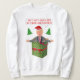 En este humorístico suéter Navidad/Navidades feos suéter, el presidente de los Estados Unidos, Donald Trump, levanta las manos mientras sale de una caja de regalos y lleva un sombrero de Santa Claus con su lema MAGA. Está rodeado de un par de árboles de Navidad y dice: "¡Mi suéter feo es de Mendous de Árbol!" También puede cambiar el texto si personalizar.
