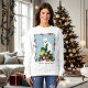 Un lindo gato blanco está sentado en la parte superior de un árbol de Navidad. La estrella ha sido derribada del árbol de Navidad pues el lindo gato blanco cree que solamente puede haber una estrella de basura en esta casa.