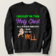 DIVERTIDO Cordón cristiano de Halloween que dice ABORDO EN EL SAGRADO FANTASMA TODOS LOS OTROS FANTASMAS PUEDEN IR AL INFIERNO, lo que da un claro y fuerte mensaje cristiano de que solamente confiamos en el Dios Alto. El diseño incluye una tipografía llamativa y colorida y un ghoul con una cruz. Esta sudadera cristiana de Halloween ha sido especialmente diseñada para gente de fe que quiere observar sin compromiso en la víspera de Todos los Santos. Elija entre una amplia selección de tarjetas, ropa y regalos cristianos de Halloween, diseñados por los diseños bereanos. Hay regalos coincidentes disponibles.