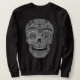 Diseño del cráneo de azúcar Muerto, con patrones complicados y detallados. Dibujo de tinta blanca y negra, en camisetas, caramelos, cartas, regalos.