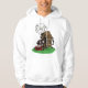 Si te gustan los perros, entonces te va a encantar el diseño de un perro en su casa de perros soñando con un hueso. El perro está medio a mitad fuera de la casa del perro con un tazón de comida delante de él. Sin embargo, el perro está soñando con otras cosas y tiene un hueso en una burbuja de sueños sobre él. Este diseño de la casa de perro se ve genial en esta capucha masculina. Perfecto para usted o como regalo