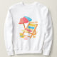 Un design estival et coloré avec chaise longue, parasol rayé, chapeau de paille, étoile de mer et panier fleuri. Style aquarelle doux et joyeux, parfait pour célébrer les joies de l'été.