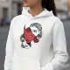 Esta llamativa sudadera con capucha presenta una ilustración abstracta que representa la dualidad del alma humana: el contraste entre la fuerza y la suavidad, el misterio y la belleza, la sombra y la luz.