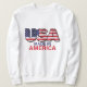 Los sudaderas estadounidenses a menudo presentan diseños audaces como la bandera estadounidense, la Estatua de la Libertad o el águila calva. Estos gráficos pueden cubrir el pecho, la espalda o las mangas, o aparecer como más pequeños,