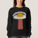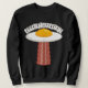 Ilustracion de personalizado vectorial de un delicioso OVNI de huevo frito al sol con un delicioso rayo tractor de rodaja de tocino con texto EGGSTRATERRESTRIAL. Palabras clave: huevo, tocino, desayuno, OVNI, alienígena, soleado, lateral, personalizado, espacio, extraterrestre, comida, lindo, yolk, sci, ciencia, ficción, marciano, humor, carne, cerdo, secuestro