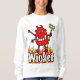 Este suéter muestra una divertida imagen de un Diablo Rojo con Trident parado en las llamas del infierno. Por una mujer que es malvada. El ilustracion en la parte delantera de esta camisa muestra al diablo con su Tridente y rodeado de fuego. Un diablo de un diseño, ¡estos camisetas son malvados!