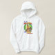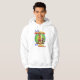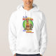 Ilustraciones coloridas en una sudadera con capucha que representa una inclinación cómica en resistencia masculina