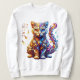 Un gato cautivador y brillante adornado con intrincados patrones giratorios que irradian vivos tonos azules, naranjas y morados. Su diseño luminoso le confiere un aspecto etéreo, de cristal, mientras que en las cercanías abundan los focos y las bombillas, creando un ambiente mágico y caprichoso. Ideal para los amantes del arte vibrante y de las fantásticas creaciones.