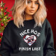 ¿De humor para unas vacaciones? Prueba este chismoso suéter de Navidades sucios. El diseño presenta un Santa Claus super fresco usando gafas de sol dentro de una forma cardíaca con el texto blanco "Nice Ho's Finish Last". Diseño unisex para hombres y mujeres. Usa a cualquier fiesta Navidad para traer alegría y risas a todos.